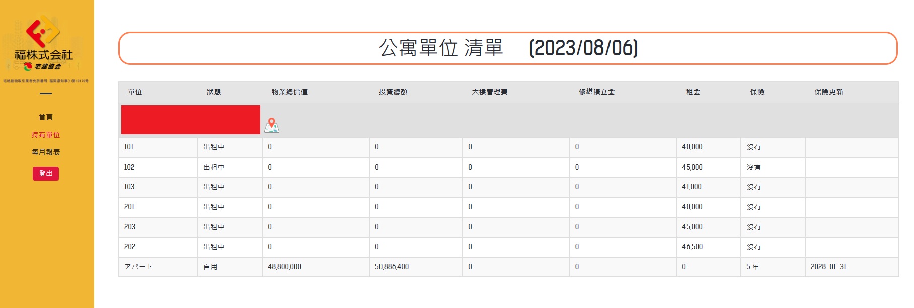 - 管理狀態:了解出租、空置、修繕與管理事項進度。